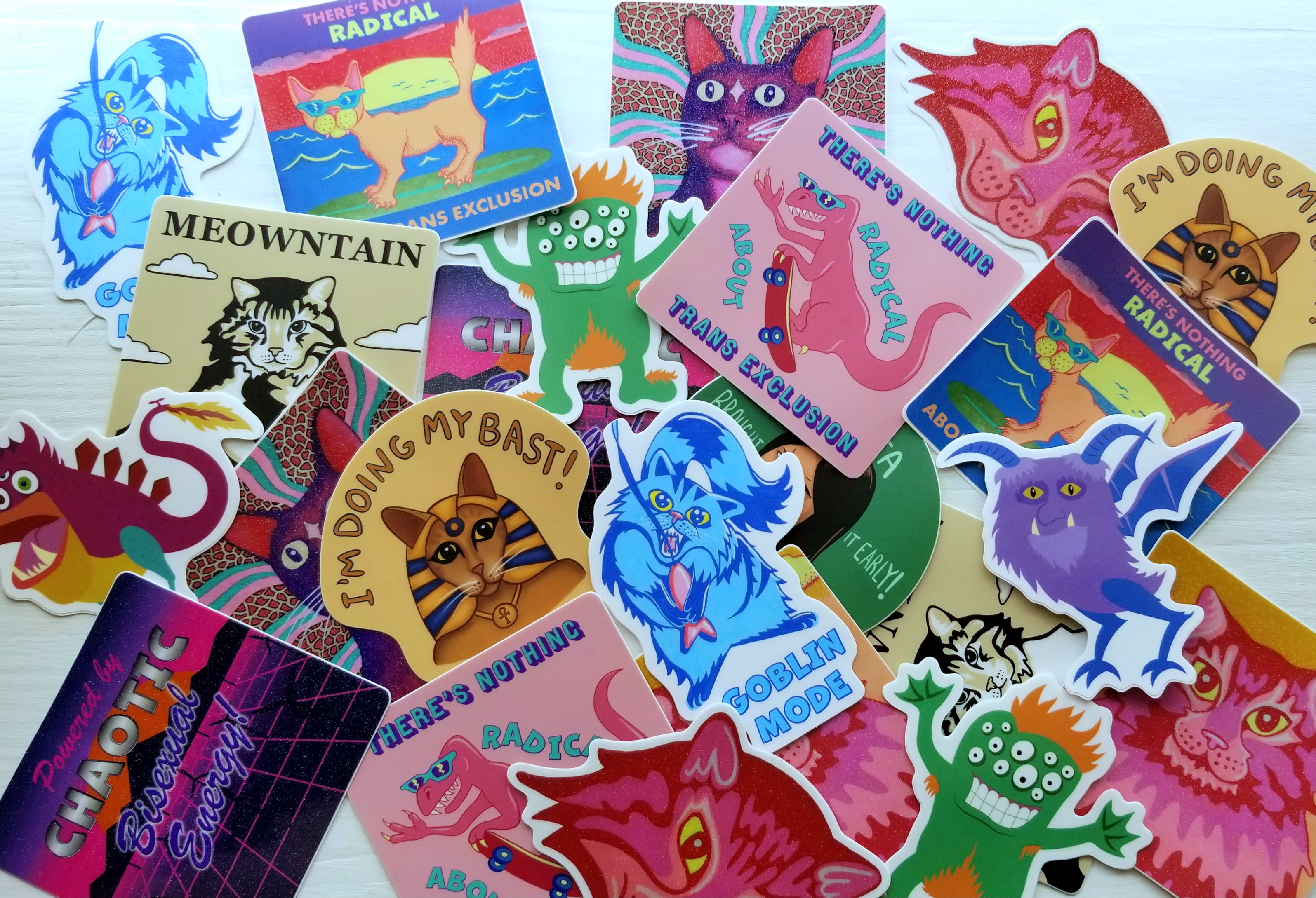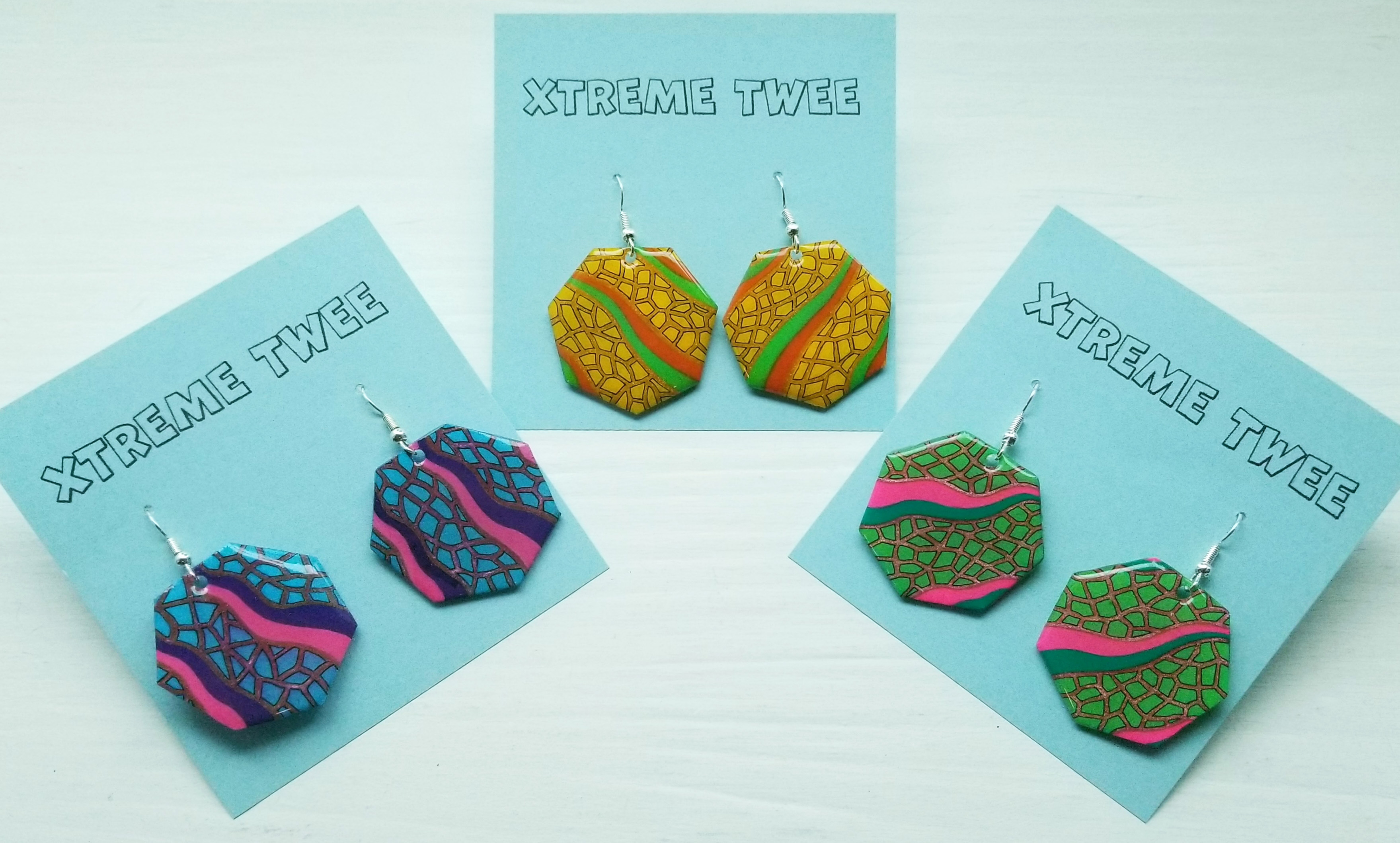 Xtreme Twee is my retail art and accessories brand. The name expresses my desire to take whimsy and color to the extreme, turning the silliness and vibrancy up to 11! Xtreme Twee’s offerings include prints, stickers and other reproductions of my art as well as small handmade and hand altered accessories, including pouches and bags featuring original repeating patterns you can’t find anywhere else!